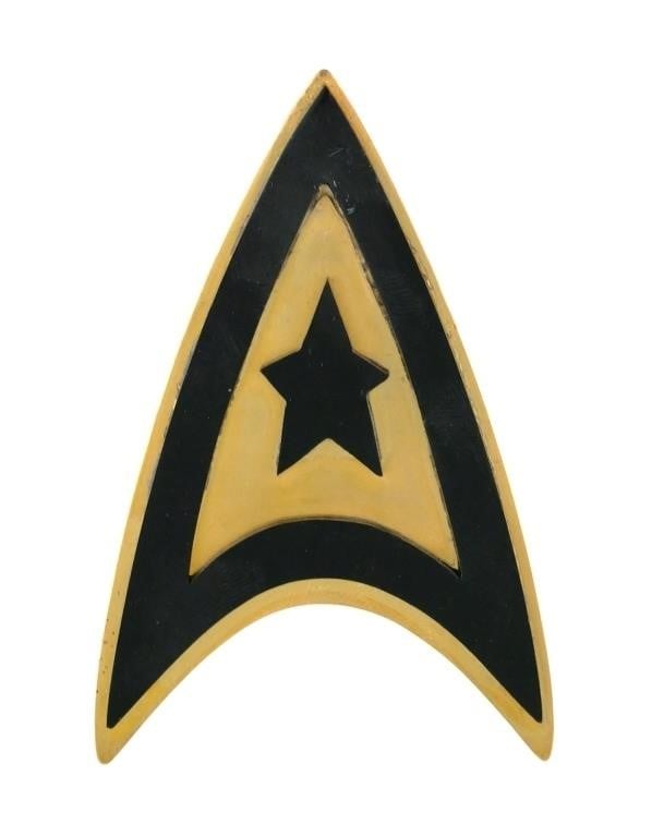 Lot #17, Star Trek 1976 prototype 14K gold insignia with two correspondence letters