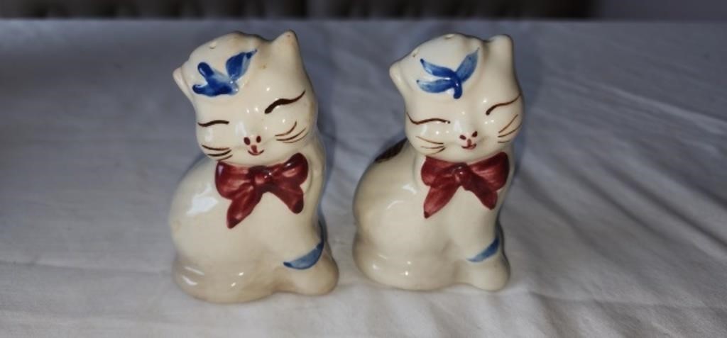 Lot #130, vintage Shawnee Puss ‘n’ Boots salt and pepper shaker set (close-up, part of multi-item lot)