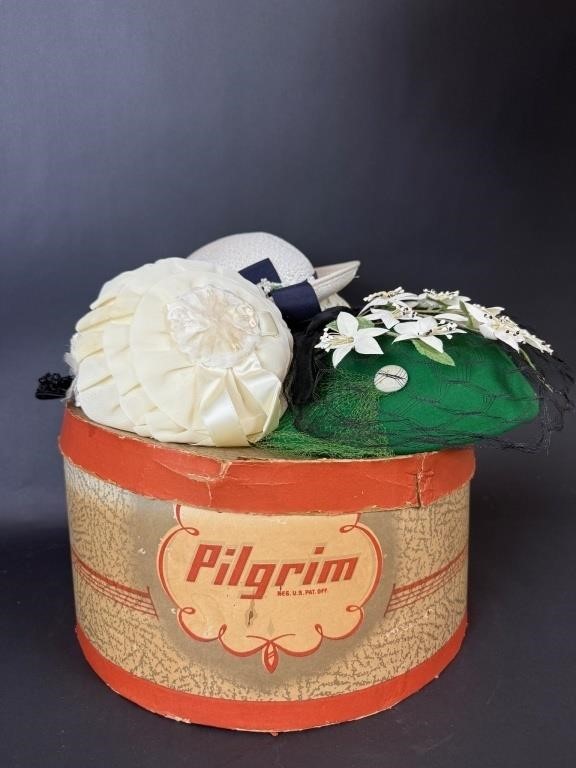They’re offering this oh-so-cool vintage Pilgrim hat box with six vintage hats (Lot#175). We’re pretty far out from the auction date, but I was surprised to see no bids at press time. Whaaat?