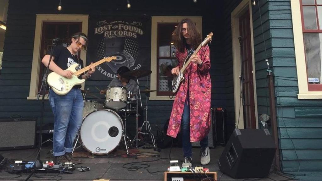 Source: http://www.VisitKnoxville.com, a band performs on the porch of Lost and Found Records in Knoxville, Tennessee, during Record Store Day 2021.